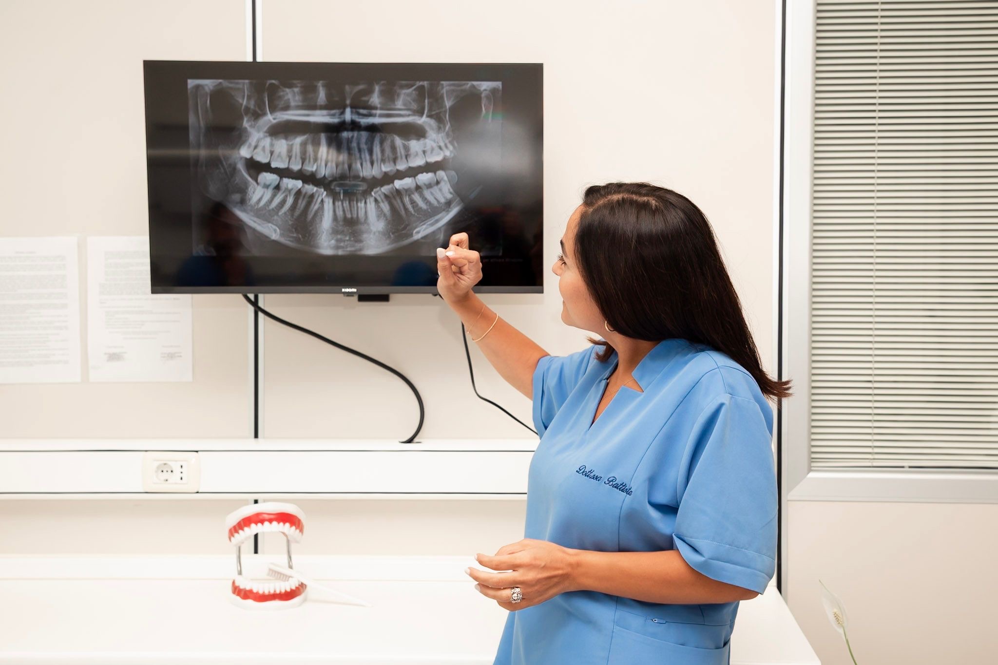 Diagnostica completa con strumentazioni moderne: radiografie e TAC . Questi esami, eseguiti direttamente in studio, permettono diagnosi precise e pianificazione accurata dei trattamenti.